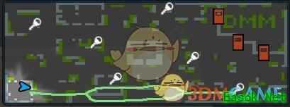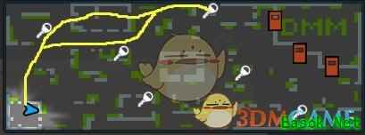 路线:家→左下锁→长墙→右下房间→右下锁 优:地形复杂,能够躲避追捕,途中经过补给箱刷新地 缺:路程过长,高概率撞上追捕 路线三