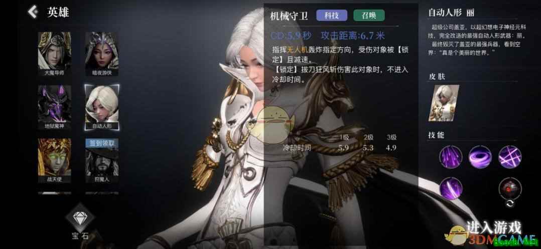 2技能:机器守卫 效果:对指定方向造成伤害,小范围聚怪,将其锁定并减速。 评价:同样与1技能一样提供锁定效果,扩大大招的增益。