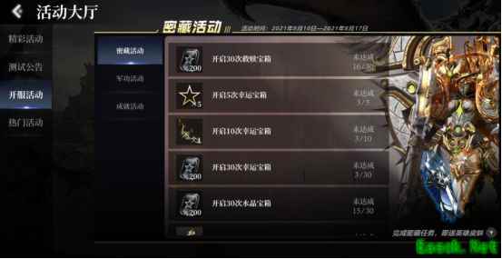 选择“开服活动”分页中“密藏活动”页签,完成部分任务获取战星奖励,提升通行证等级