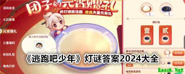 逃跑吧少年猜灯谜活动已经上线,逃跑吧少年灯谜答案是什么呢?部分朋友在猜灯谜时遇到困难,不清楚答案,那么可以来本站看看《逃跑吧少年》灯谜答案2024大全,想要了解的来自取答案吧!