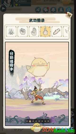 《我也是大侠》图录系统介绍图录系统记载了游戏中所有武功,江湖中的武功总共有10大类,包括内功、拳法、掌法、指爪、腿法、轻功、刀法、剑法、枪棍、暗器10类。 江湖武功并没有最强武功,一种武功总会克制另一种武功,也总会被另外一种武功所克制,大家平衡发展才是王者。 每种武功又有8种不同武功招式,累积会有80招之多。 招式解锁之后的武功你就能看到完整的演练了,你的招式获得的越多搭配方法也就越多,不管遇到什么敌人都能轻松应对哦。 另外不要忘了给自己的武功升级,这是提升实力的很好途径!