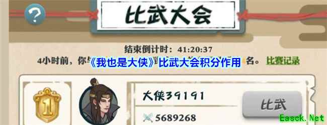 《我也是大侠》是一款超休闲的武侠放置游戏,游戏中比武大会积分有什么用呢?下面小编就给大家带来了《我也是大侠》比武大会积分作用介绍,感兴趣的一起来看看吧! >>>>小编推荐:《我也是大侠》2020礼包兑换码大全