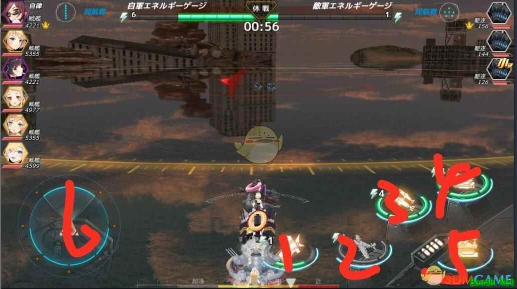 4、炮击攻击: 战舰、轻巡、重巡、导驱(极远距离)、导巡(极远距离)的主要攻击方式。 5、副炮攻击: 所有种类舰船的辅助攻击方式(伤害其实挺高的。) 6、船舵: 方向盘。这里要强调的是正上方是朝向敌方舰队的,而不是前方。同理左右下也是相对于对面舰队来说的。
