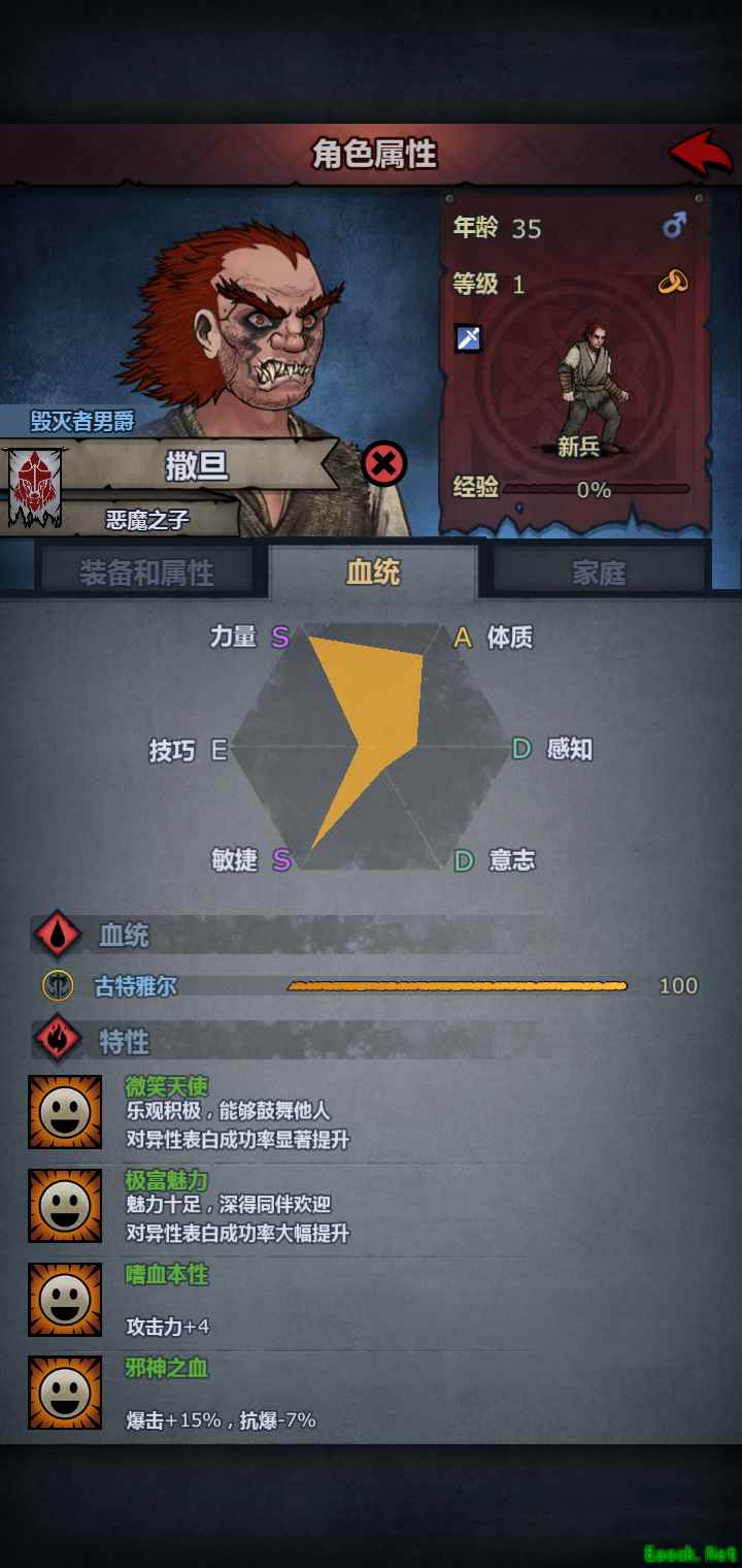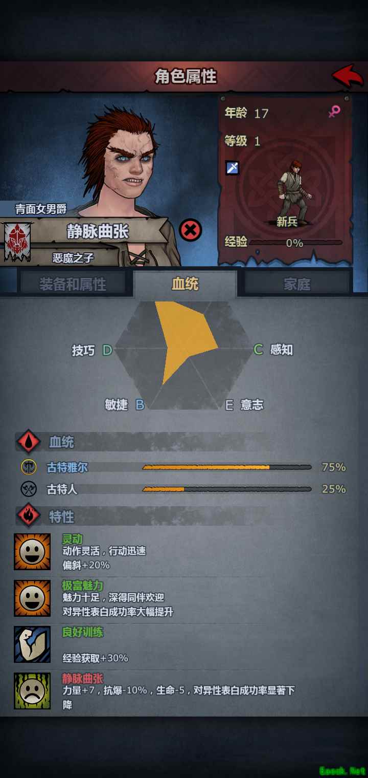 种族负面特性——静脉曲张 属性加成(没错就是加成)——力量+7,抗爆-10%,生命-5,降低表白率 外貌特征:脸上有如同蚯蚓一般暴起的青筋(仔细看)