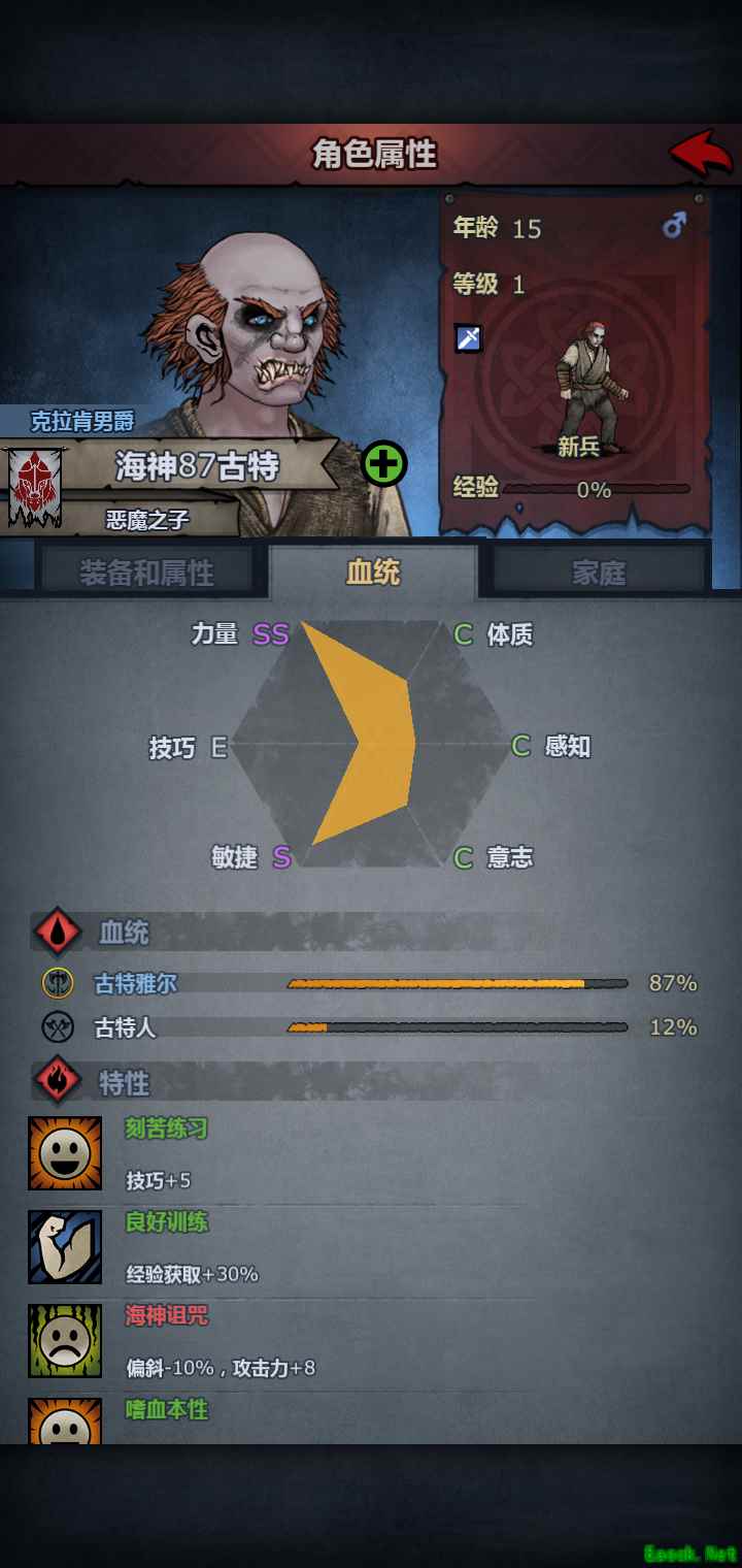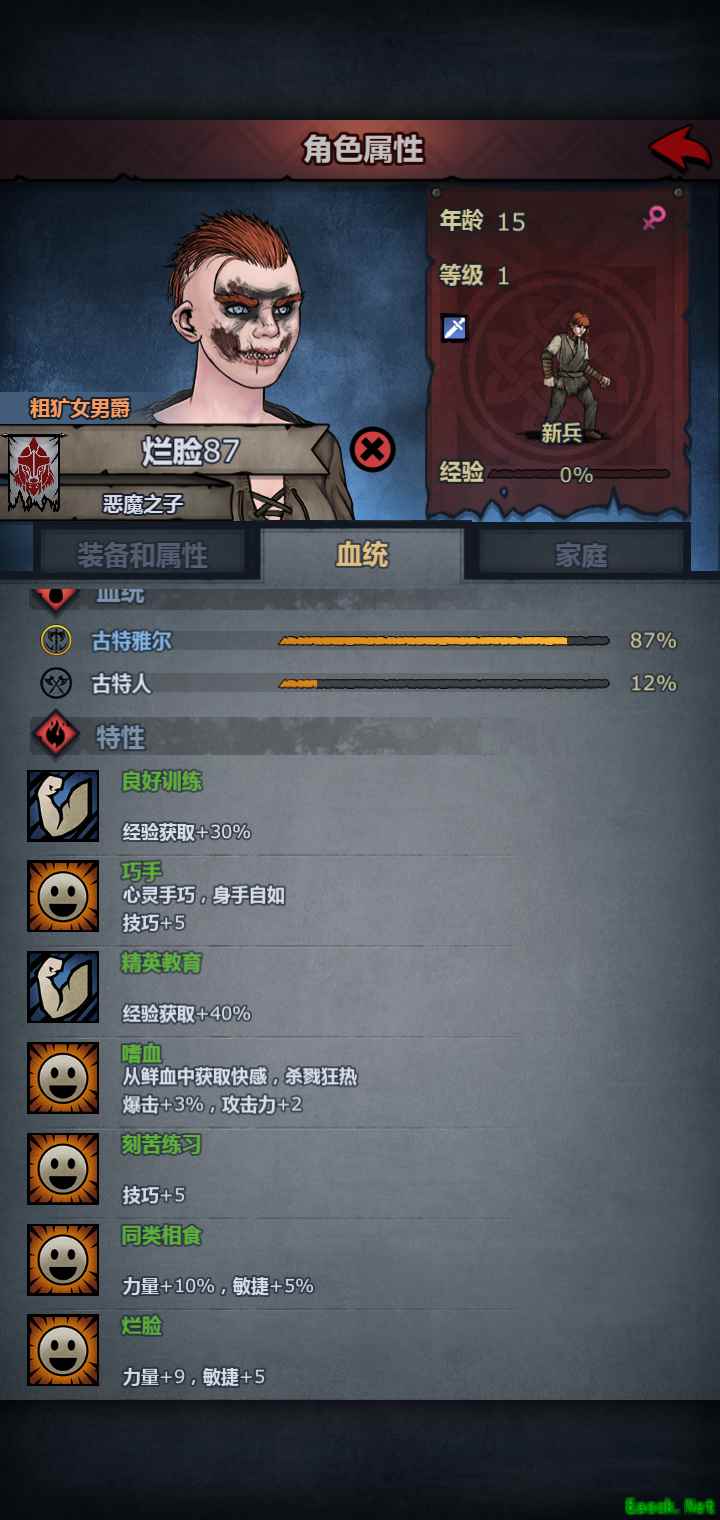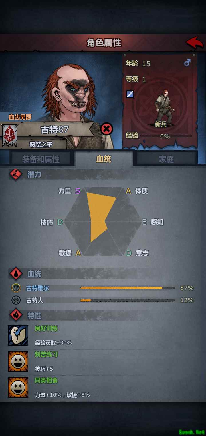 古特雅尔特征及对应特性效果攻略前言: 每个国家都有两个橙色特性(圣痕和普通橙色),三个蓝色特性(高级蓝和两个普通蓝色)和一个负面buff特性,分别对应着几个外观特征,你可以理解,只要了解有血统对的上,外观没错,那么对应的特性一定有,反之亦然。 对应特性所增加的寿命 圣痕(橙):约25年 普通橙色特性:约15年 高级蓝色特性:略低于普通橙(约10年) 普通蓝色特性:5-10年 种族负面特性:无寿命增加 古特雅尔 古特是没有圣痕的,但有橙色特性 橙色特性——烂脸 属性加成——力量+9,敏捷+5 外貌特征:脸上有如同丧尸般腐烂的伤口