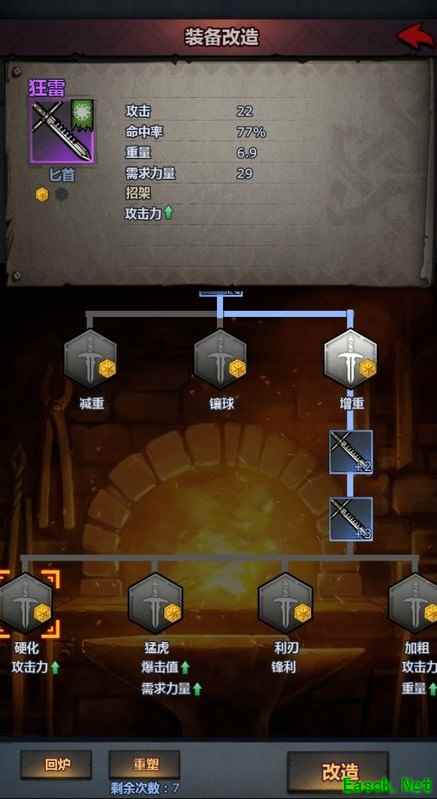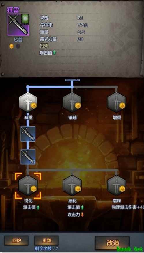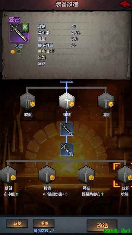 匕首改造顺序攻略推荐:减重(-4力量)<磨锋(40爆伤) 改造流程