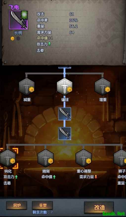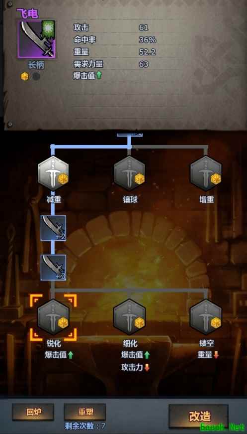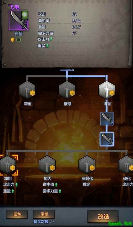 长柄改造顺序攻略1、增重(+8攻击)<加粗(+11攻击) 改造流程