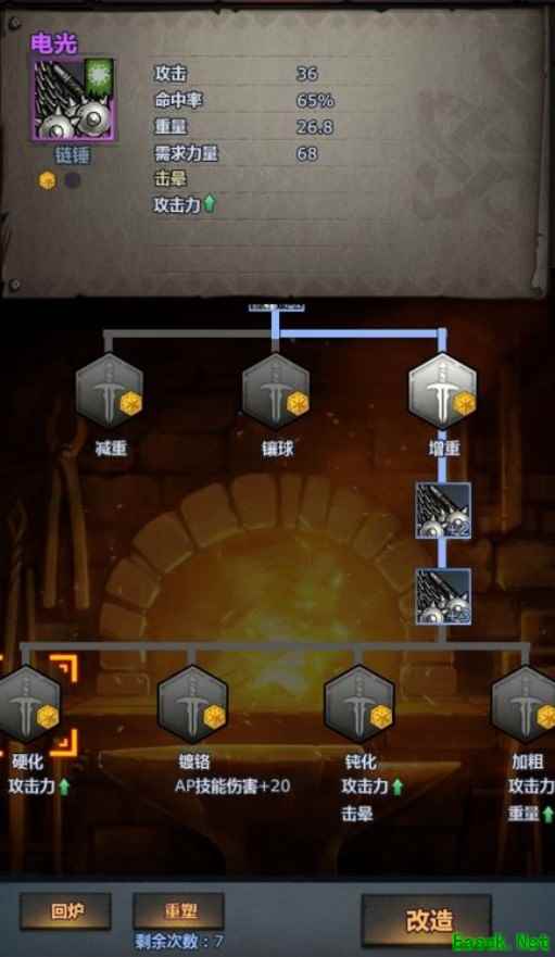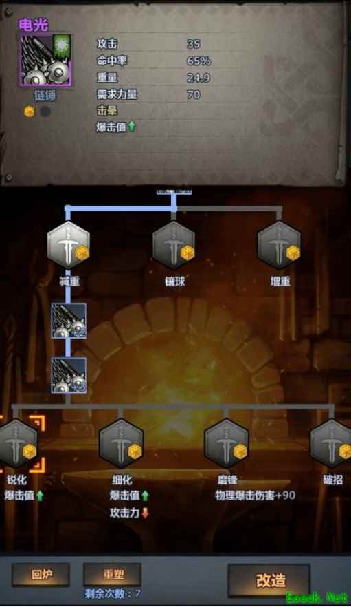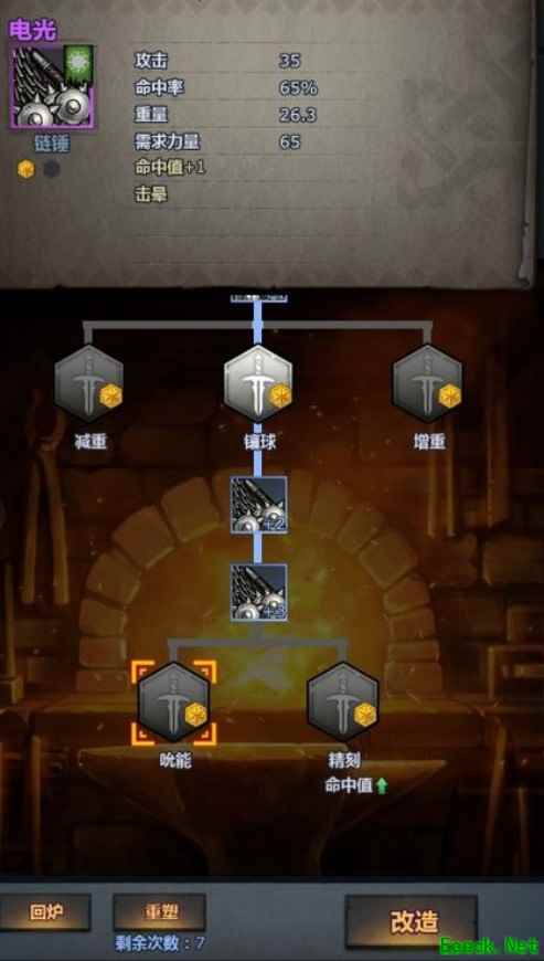 链锤改造顺序攻略1、减重(-8力量)<磨锋(90爆伤) 改造流程