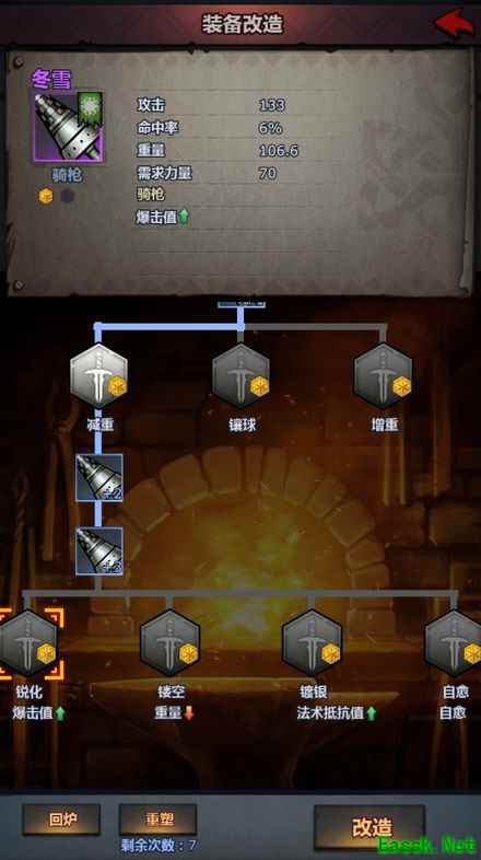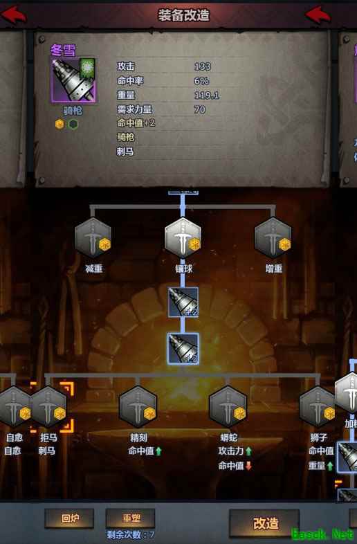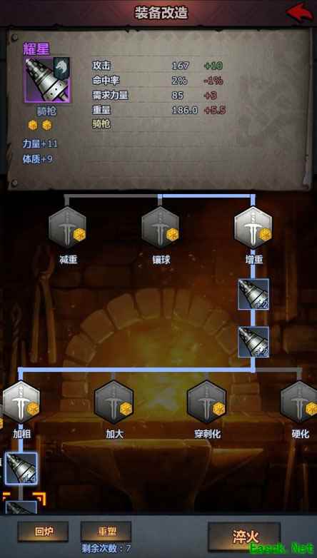 骑枪改造顺序攻略 推荐:增重(+5攻击)<穿刺(对锁甲伤害+25) 改造流程