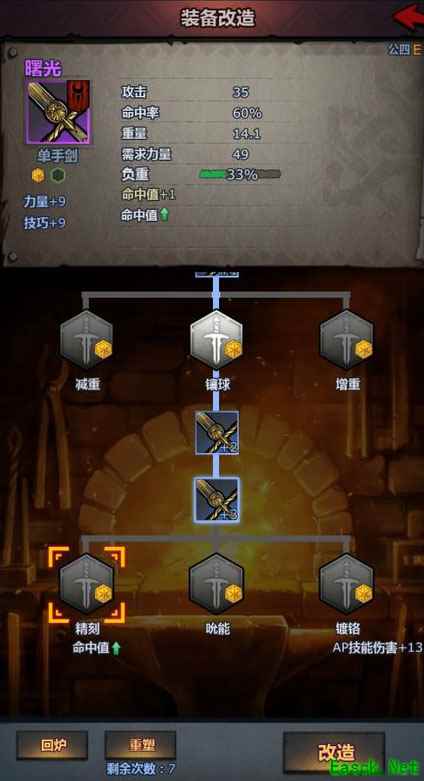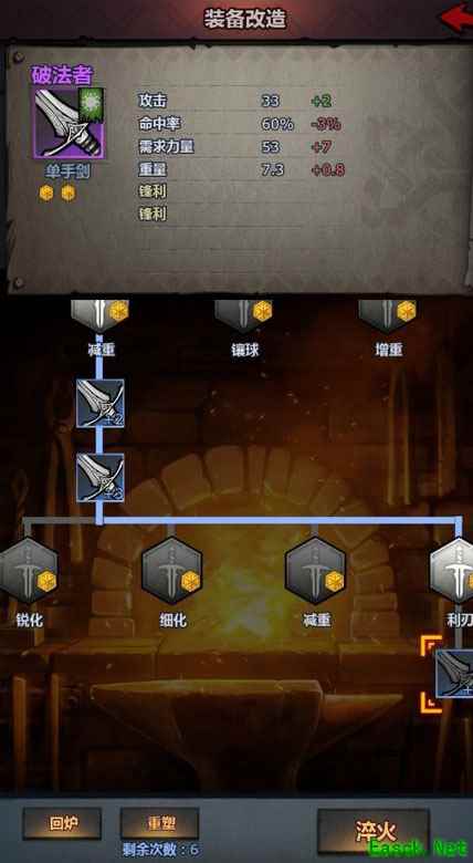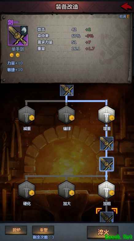 单手剑改造顺序攻略推荐:减重(-6力量)<利刃 ( 11攻击) 改造流程