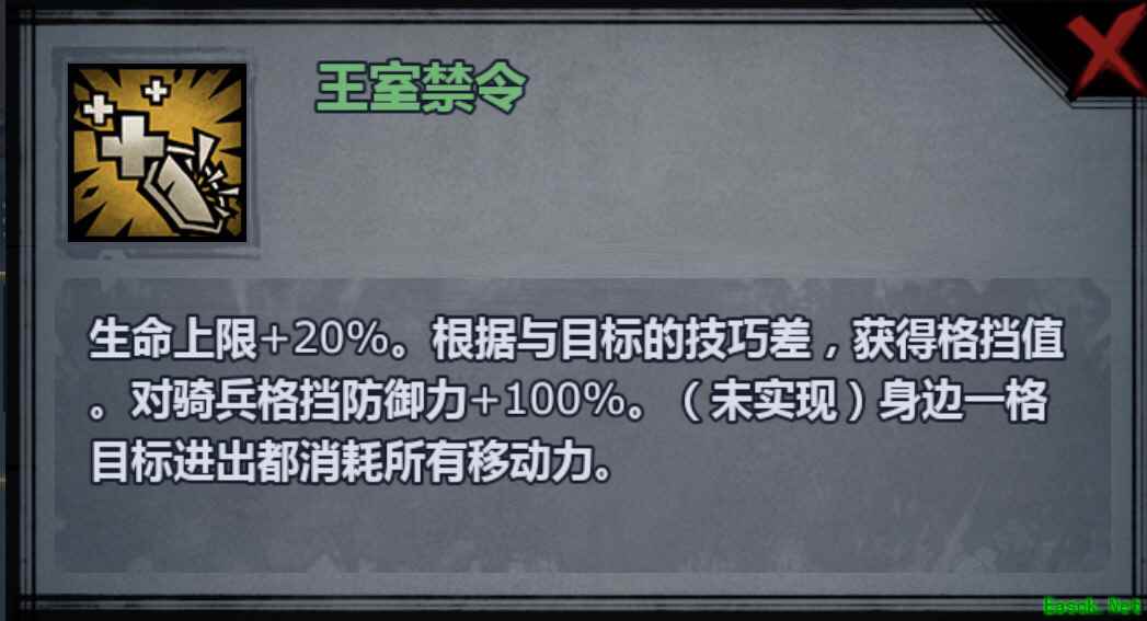 1、生命上限提高的肉度很不错,而且技巧差转化格挡值,生存强 2、八盾出现后常规禁卫也和常规皇骑和常规大剑对骑兵格挡防御力增加,身边一格内角色进出消耗所有移动力。 完美格挡