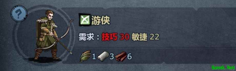 2、游侠 转职推荐:猎人→弓箭手→游侠 属性要求:B技A敏B力以上,不建议低配。