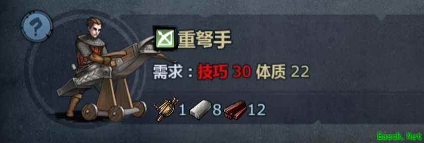 3、盾弩 转职推荐:见习骑兵→弩手→盾弩 属性要求:A技B力B体以上,不建议低配。