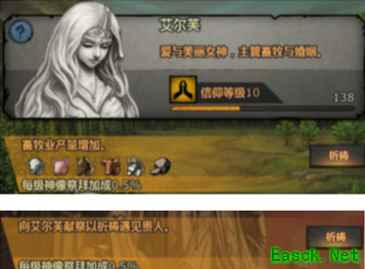 一、艾尔芙神像作用一览 1、畜牧业 每级神像祭拜加成0.5%,产出都是很实用的物品建议搭配高级产出的神明一起,畜牧没有高级产出,马和黑松露都没有对应堡。 2、遇到贵人 每级神像祭拜加成0.5%,适用于想升高级爵位,但是几率你懂得,锦上添花而已。