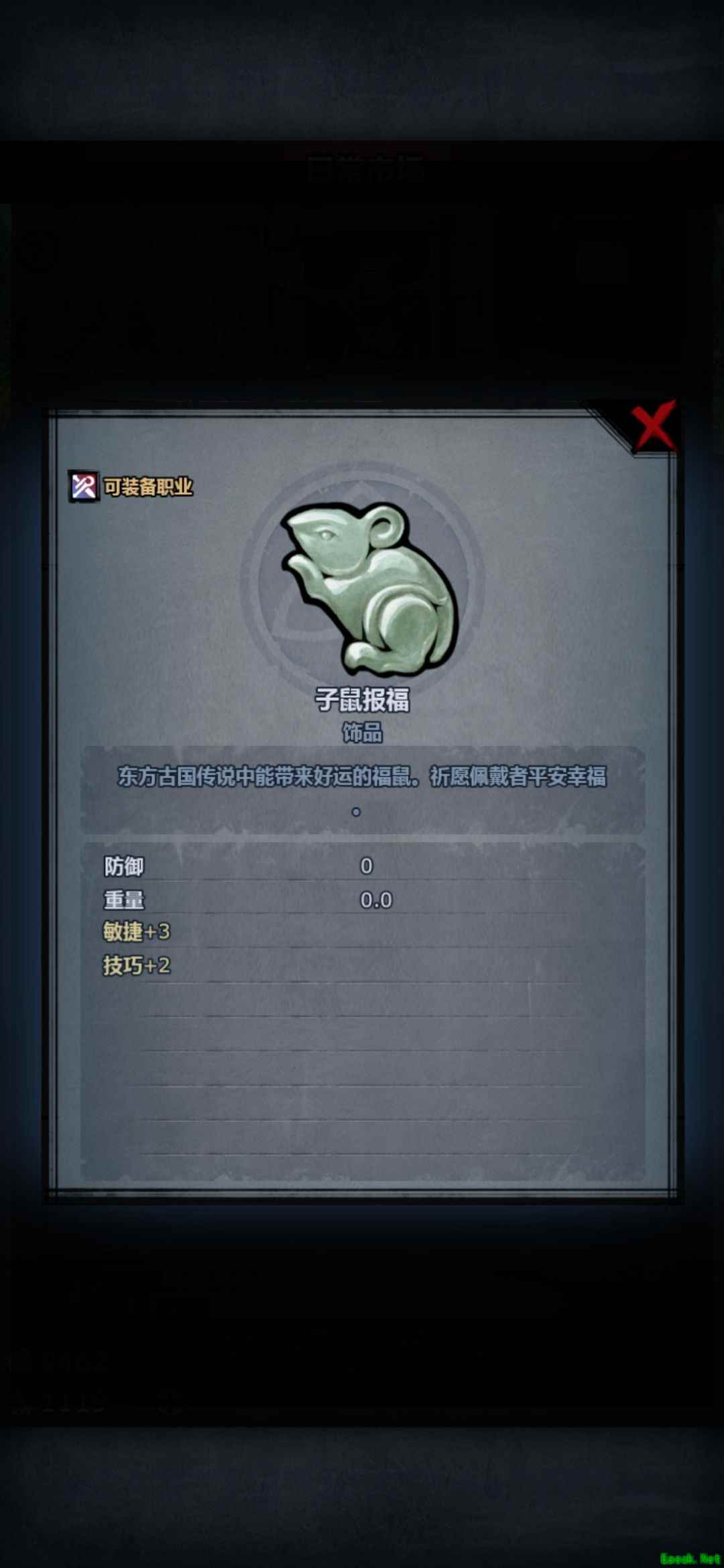 2,子鼠饰品 属性 +3敏 +2技巧 这个饰品怎么说呢?如果有技敏 传家宝 则不需要这个饰品凑属性转职。况且其它饰品 也有相应+敏 +技。 也不是很推荐入手这个。