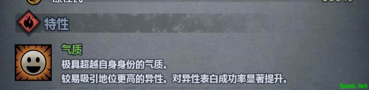 极富魅力 有这些特性的后代能跨级寻找更高爵位的配偶(如骑士找男爵、男爵找伯爵),而爵位是血脉提纯的关键前提! 使用方式:将这类角色放入城堡训练学校,专门教导子女“气质”属性,子女成年后凭借高气质和优质特性,搭配足够的声望(如声望友善可找男爵结婚),就能稳步提升家族爵位。