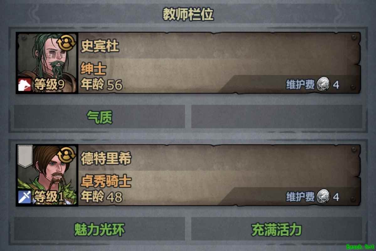 《诸神皇冠》萌新酒馆入门攻略:一、招募过渡战力,解决“无人可用”难题 前期主角团属性有限,剧情赠送的部分强力角色也存在“老化快”等问题。这时酒馆可直接招募佣兵填补战力空缺,帮你应对剧情副本和日常战斗。 挑选时优先看两个关键点: 1、年龄与等级:优先选25岁以下、9级以内的角色,这类角色成长空间大,35岁以上的角色不仅难结婚,战斗力也维持不了太久。 2、基础属性:即使没有稀有血脉,只要有1-2个B级属 性(感知C级也算优秀),也能帮助我们愉快的度过前期。(我个人感觉这个没什么用,因为酒馆的佣兵质量只能说懂得都懂...还不如存点钱升堡!) 二、物色“特性老师”,助力爵位与血脉提升(重点) 这是酒馆对萌新的长远价值核心——通过招募带优质特性的角色当老师,帮家族后代提升爵位、提纯血脉。比如: 气质:“绅士”(男性)或“淑女”(女性)/拜金