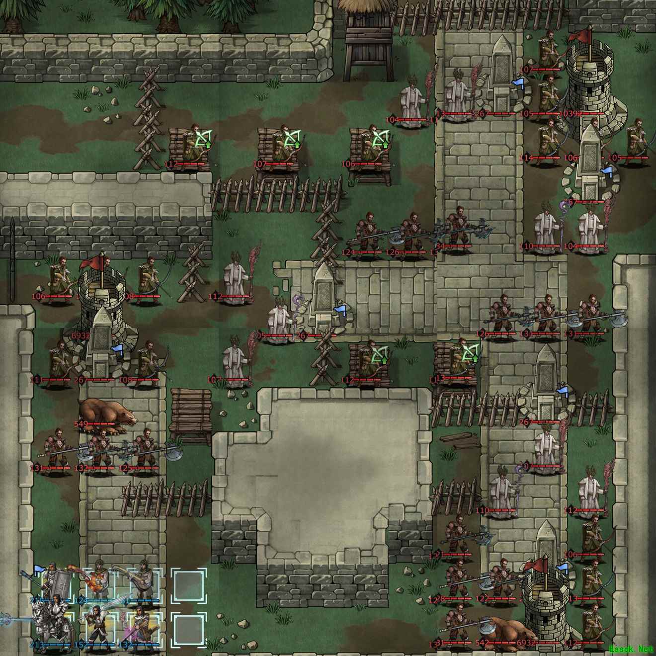 第7、9回合分别在主塔右边刷新2熊1大德、3大德