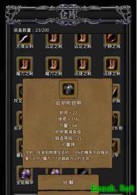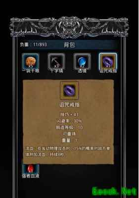 18层左下角就是第一层老人口中的棺材,里面关了个恶魔,交十个罪者之血有两个选择,罪者之血会从结算时随机获得;放出恶魔或封印它,放出给图下这个戒指,封印给守护戒指,