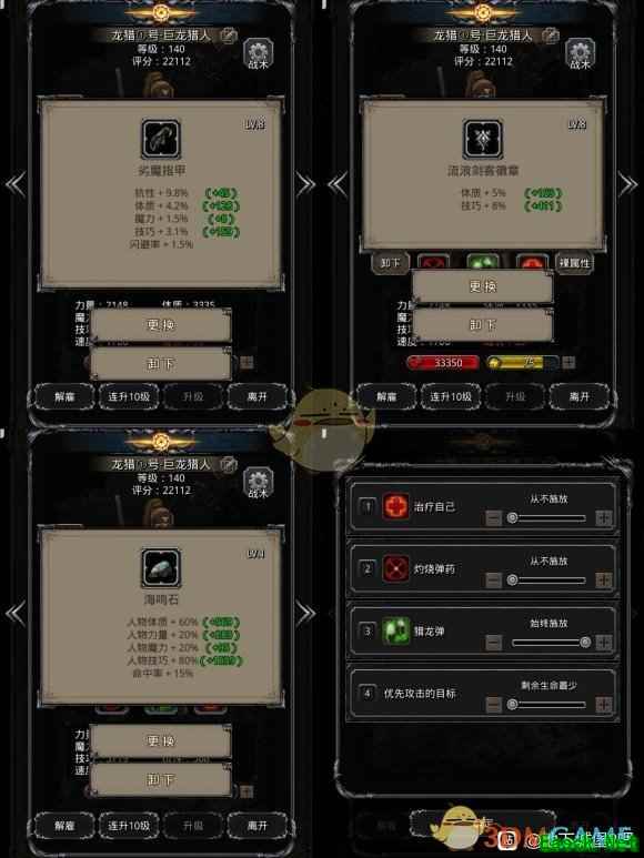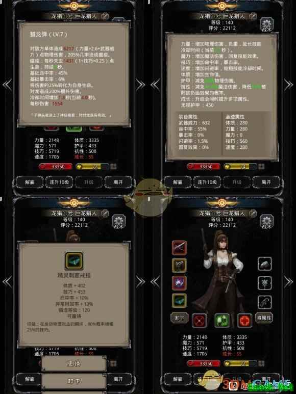 龙猎的配装图 (龙猎可以配置地狱眼和铃铛,衣服穿影碟风衣,无视护甲可以达到600输出增加了不少,技巧也高了)