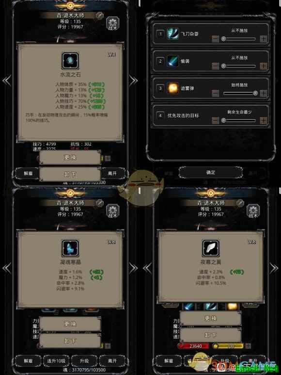 《地下城堡2》图24奎因打法攻略这个boss与前面的那个boss刚好相反。这个boss我打的时候幻境法师虽然死了,但是其咒火特效却可以持续整个游戏过程。 虽然最后只剩下诡术刺客,但由于其高闪避,所以boss是全程miss,终于也变成了『胆小的恶魔』。只不过是位置对调了 由于没有时间限制,可以靠着咒火特效以及诡术技能特效磨死,我大概打了7分钟左右。 技能设置方面没啥要强调的,幻境不管吸血还是减速技能都只能叠加到19层然后就挂了(我只试了两次),其余都是一些常规技能设置,就不再赘述。