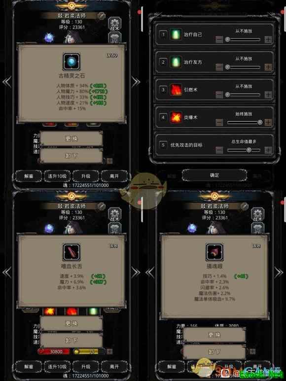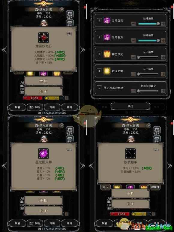然后就是神官的配装图 …………………………………………………………………… 技能设置方面 始终嘲讽(boss死后可以关的,关闭与否没多大影响),奶线设置直接直接参考原贴60/80