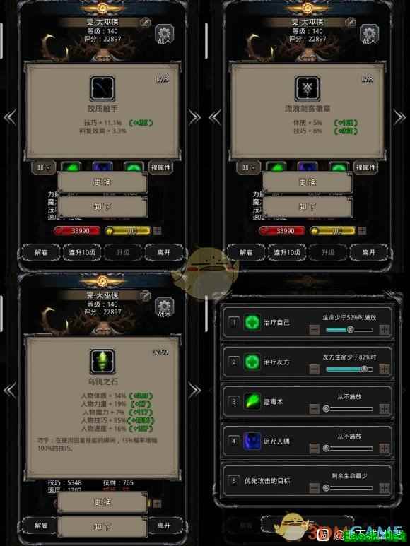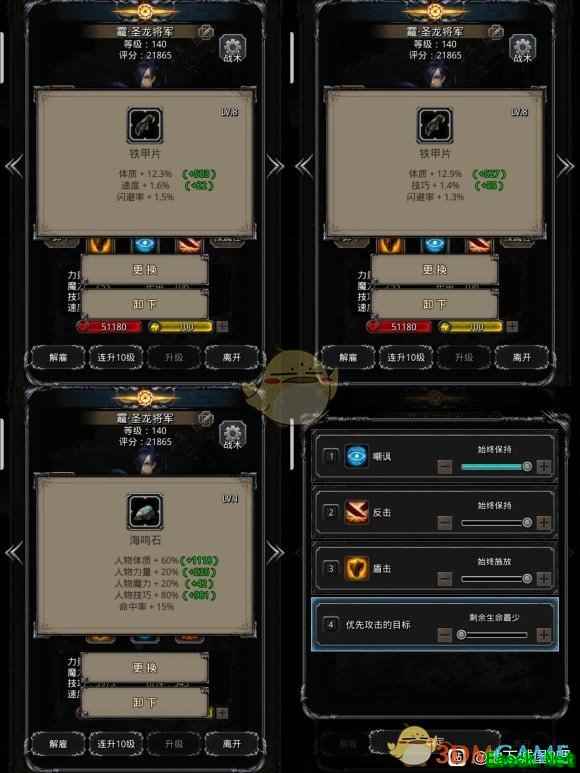 《地下城堡2》图二十四多西亚王城攻略大全 《地下城堡2》图24阴影魔将·托雷佐打法攻略配置为高技巧枪,圣龙(穿带⭐的符文甲铠甲,可红可金),神官,巫医。 难点在于把握节奏,这个需要死亡多次来掌握。尤其是英雄之间的技能切换。之前打的绝大部分都是由于圣龙死了,少部分是巫医。巫医之所以死亡原因很简单,就是圣龙嘲讽断了,直接导致巫医被boss打死。圣龙之所以会死,就是因为神官奶的节奏出了问题,导致原本应该加在圣龙身上的回春加在了神官身上。再就是过度手动圣龙,导致加奶未能及时进行。不过好在过了,不容易。 技能方面: 圣龙→嘲讽,反击,盾击全开 【当衣服技能(即专注)触发时手动反击一下,然后圣龙挂自动。反击时间为45s】 神官→始终奶自己。手动奶圣龙,注意奶的节奏,不能乱。这个攻略大概三分多钟就可以结束,如果怕圣龙提前死可以按节奏提前奶。总之,一切见机行事。 巫医→我设置的是52/82,巫医开局手动奶自己后奶圣龙。然后挂自动。
