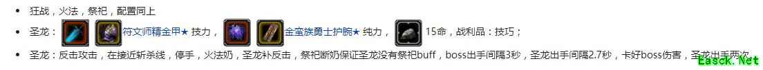 打法设置: 祭祀:始终奶 剑豪:开杀机暴起 火法:开炎爆术 狂战:开乾坤一击 经验杂谈: 斩杀线是70万,这套狂战头巾触发、火法龙杖触发、剑豪魔影剑触发的话斩杀线在80万左右,可以用剑豪在80万左右尝试,如果触发立马其它两个人攻击。 boss出手间隔3秒剑豪出手间隔2.9秒,卡好boss伤害,剑豪出手两次(操作难度略高)。 经典圣龙反伤By:安测团队 参考配装
