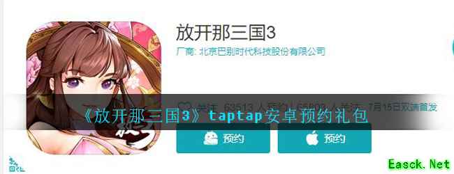 《放开那三国3》taptap安卓预约礼包获取方法taptap安卓预约礼包领取地址:https://www.taptap.com/app/187880