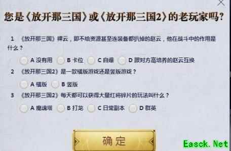 以上就是小编整理带来的《放开那三国3》老玩家认证答案介绍,更多精彩内容,请点击关注易采游戏网,小编将持续为您更新! 本文内容来源于互联网,如有侵权请联系删除。 |