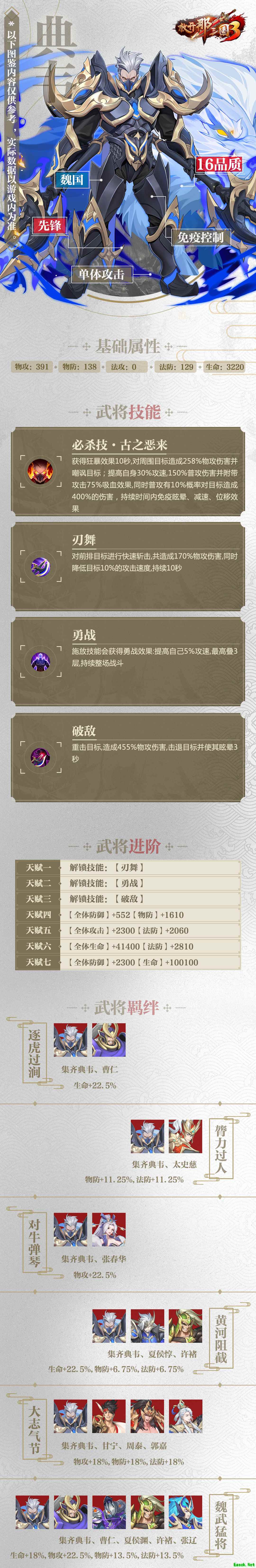 《放开那三国3》典韦属性技能羁绊图鉴