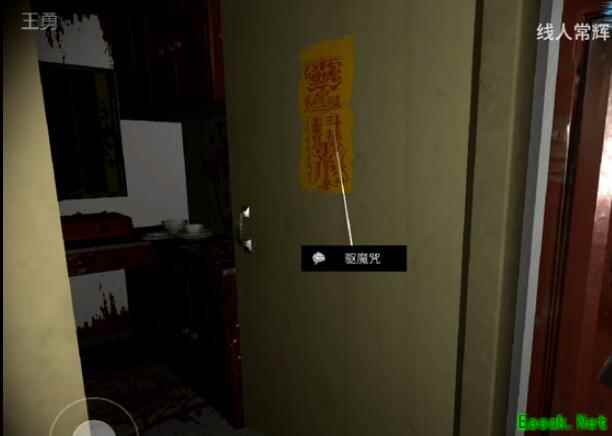 《孙美琪疑案:王勇》五级线索——驱魔咒驱魔咒:位于403室进门左边厨房的门上。 线索详情厨房门上贴着驱魔咒。