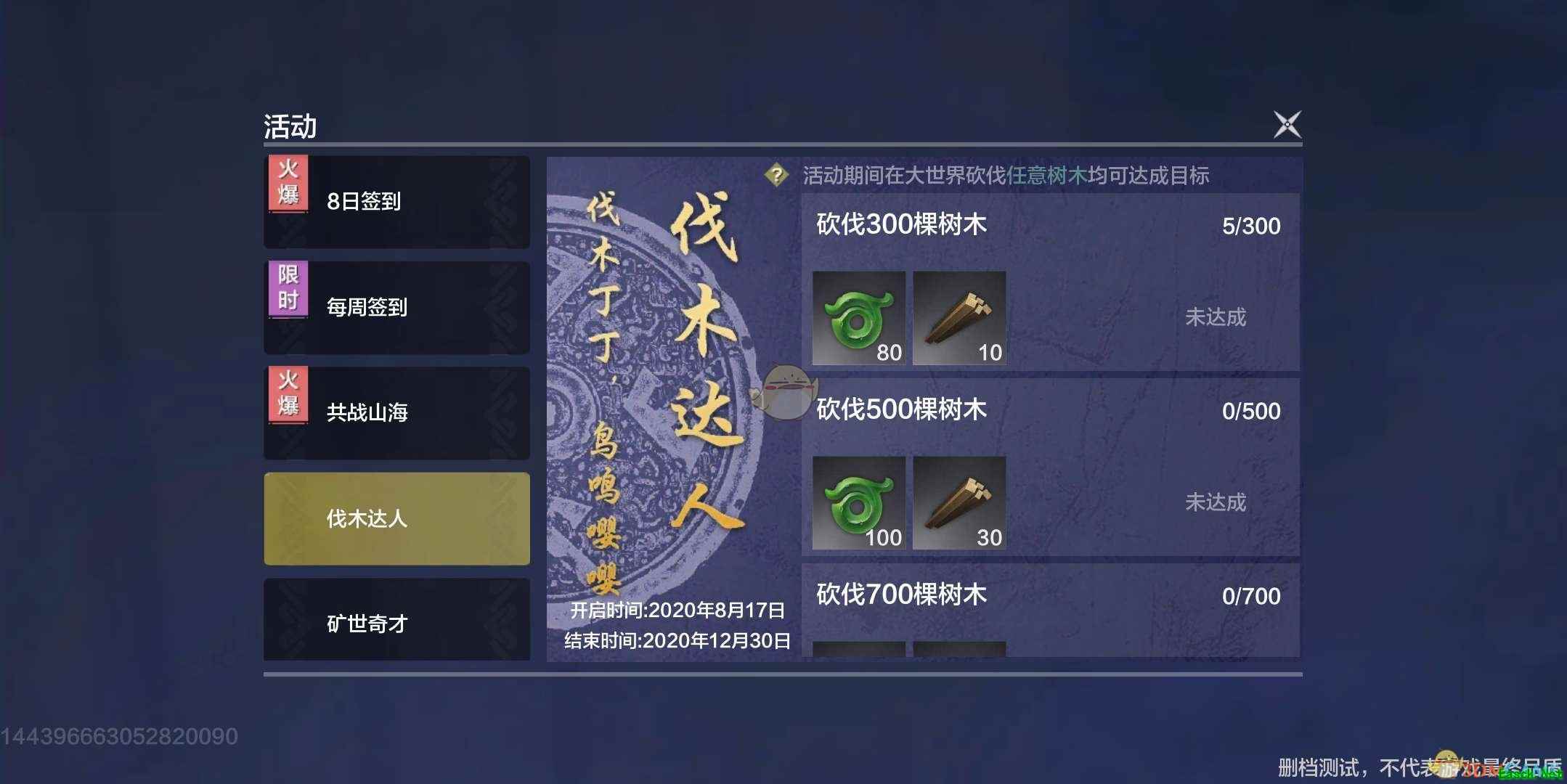 3、例如伐木工人的活动,完成伐木数量就可以获取对应的脂玉奖励。