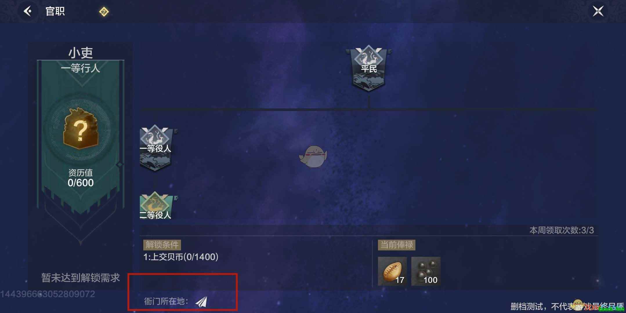 2、注意官职界面的衙门所在地图标,点击后可以在地图上显示衙门的位置。