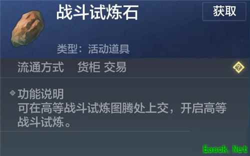 寻找【高等战斗试炼图腾】,上交后开启【高等战斗试炼】,图腾样式如下图所示,奖励比普通试炼好上不少。