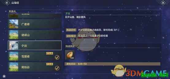 首次纵目可以获得灵气、脂玉和贝币奖励,去山海经里交付会有50生命值或者3防御力的属性加成,此外还会提升日活跃度和周活跃度5点。 以上就是小编整理的关于《妄想山海》风景点位置寻找攻略的全部内容,更多游戏攻略请持续关注手游网! 本文内容来源于互联网,如有侵权请联系删除。 |