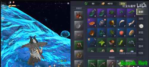 3、可以选择一个飞行的坐骑白翎雕飞到太空,到达之后就可以自己动手建造房子了。
