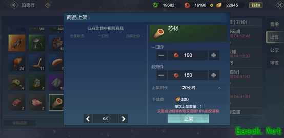 商品上架时,卖家可以选择物品的一口价和起拍价,起拍价不能高于一口价。同时,为了防止黑心卖家,每种物品都会有价格上限,并不能将商品挂的无限贵。卖家也可以选择上架时常,选择的上架时长越长,拍卖行收取的手续费就越高。
