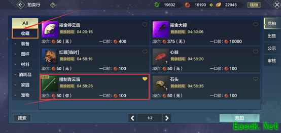 所有拍卖师都互相连通,所以无论到哪个村,都是同一个拍卖行哦。打开拍卖行之后就可以上架或浏览你想要的物品了。 买家 作为一个买家,需要关注的不仅仅是物品,还有剩余时间,出价和一口价。 因为是拍卖,所有出价是之前玩家或卖家出的最低价,如果你愿意为这样物品付高价,你可以继续往上拍,但是每位旅者只能出价一次。对于你出价的物品,可以在收藏中找到。剩余时间过完之后,出价最高的旅者将获得物品。
