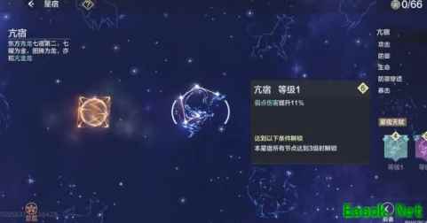 二、星宿系统介绍 星宿系统类似于天赋系统,每升一级增加一点天赋点。 天赋点可以按顺序点亮对应天赋,增加玩家一定的属性。 点亮一个套路全部属性后会激活对应套路的被动天赋。