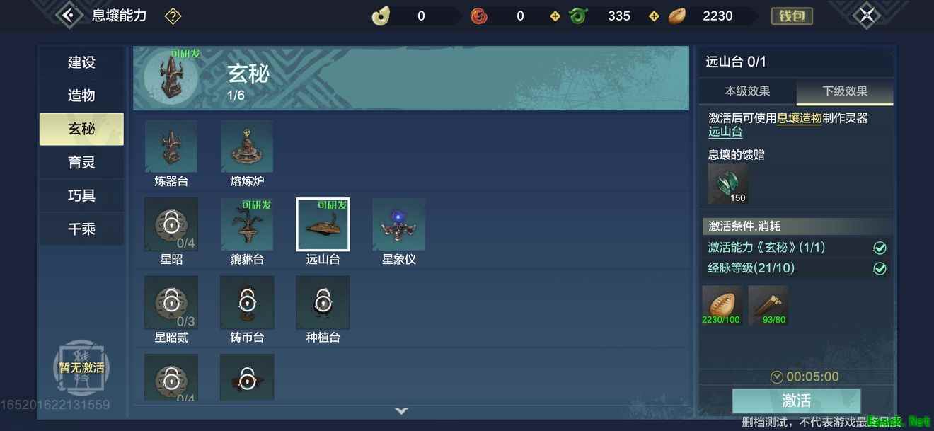 远山台介绍: 一、建筑介绍 远山台为家园内的灵器之一,需要在家园科技的玄秘类进行解锁制作。