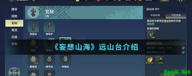 在妄想山海手游中远山台是什么呢?远山台为家园内的灵器之一,需要在家园科技的玄秘类进行解锁制作。那么想知道远山台具体介绍的就跟随小编一起来看看吧。