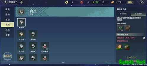 三、孵化巢制作 在合成-简易造物-杂物界面,第一个建筑就是孵化巢。 制造条件,是解锁息壤能力-育灵里面的孵化巢,家园等级3级消耗100贝币+40纤维即可。