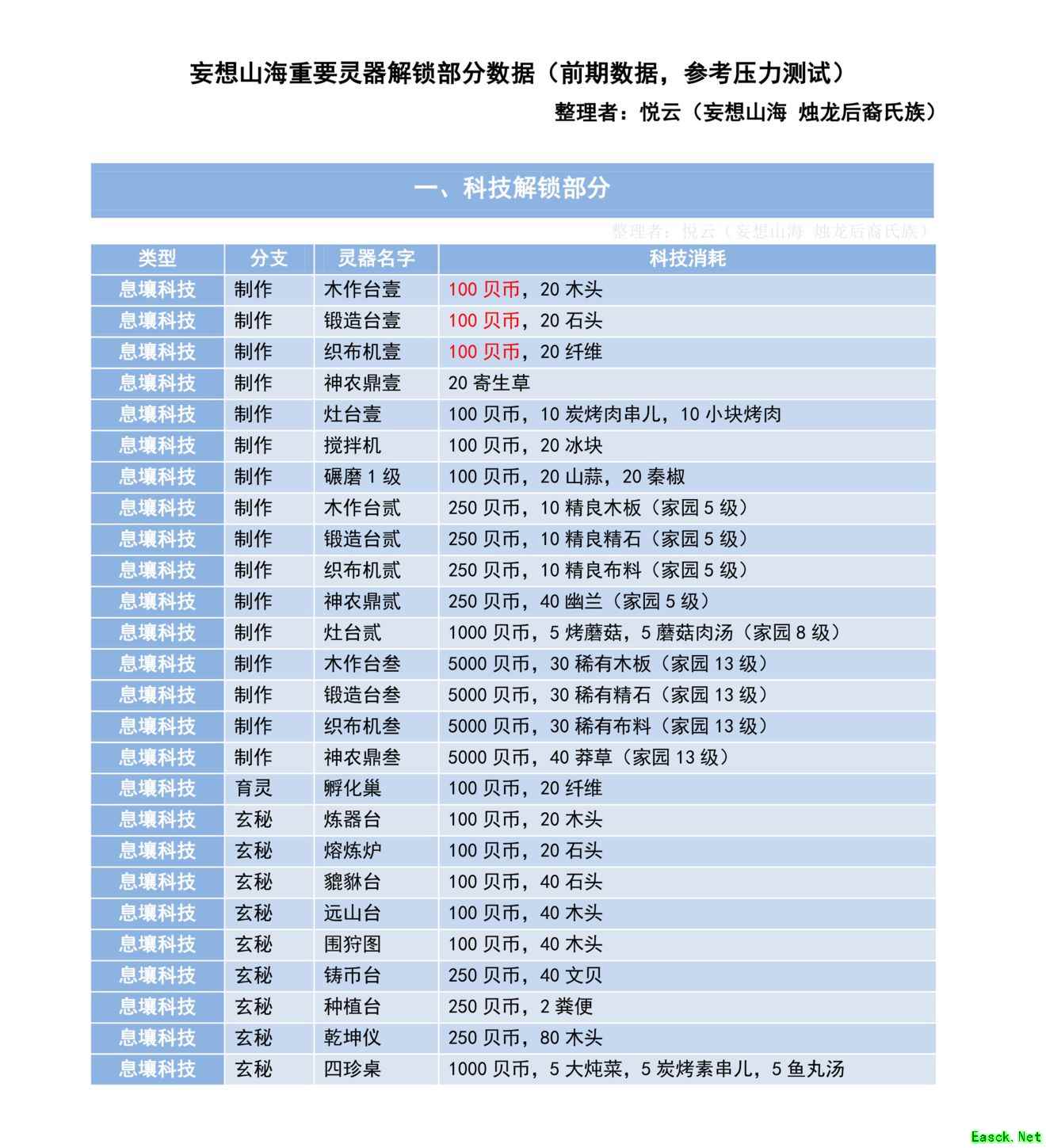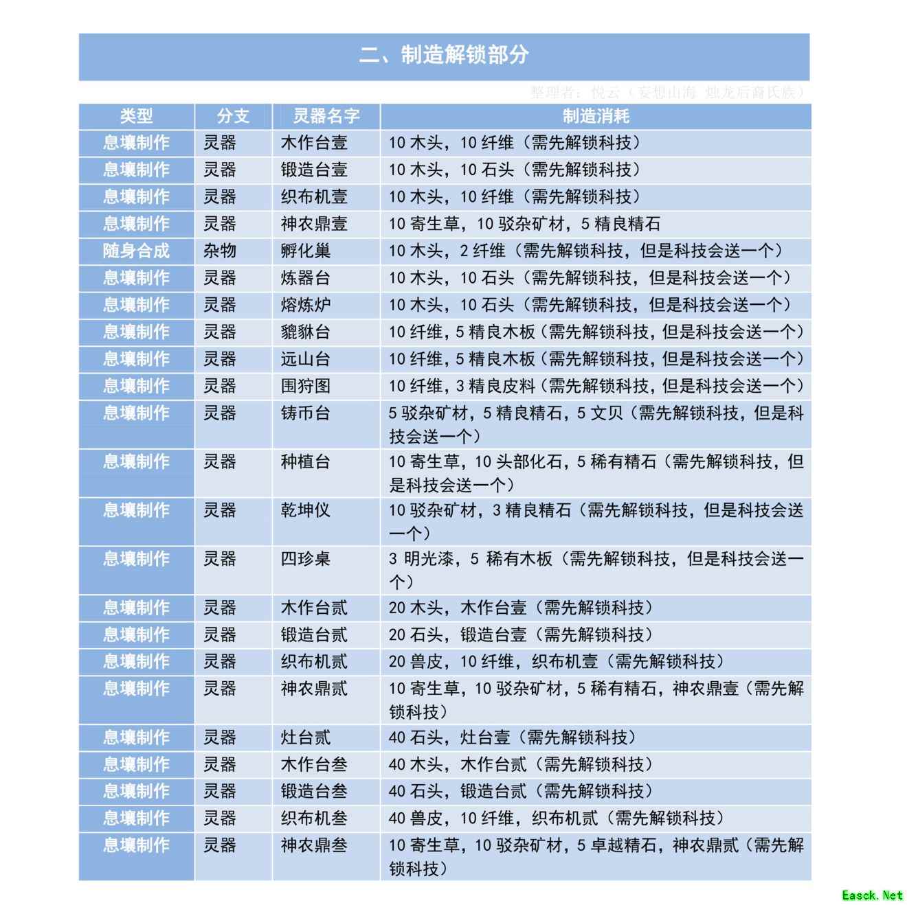 重要灵器解锁攻略下面是重要灵器解锁的部分数据: