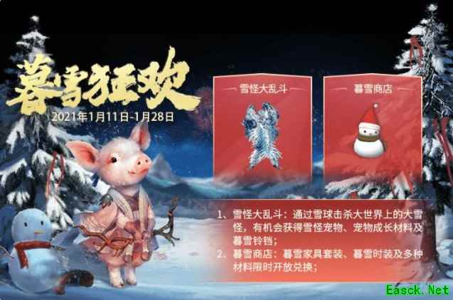 雪怪大乱斗玩法攻略雪怪大乱斗是即将推出的暮雪节活动全新玩法 1月11日-1月28日,游戏官方将开放暮雪节活动。 玩家需要通过雪球来击杀世界上刷新的各种大雪怪 在活动中有机会获得雪怪宠物和宠物材料 同时通过在学乖大乱斗活动中获得的材料可以兑换各种全新的内容 感兴趣的玩家一定不要错过哦~
