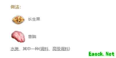 配方: 长生果+兽脑+水类+其中—种(调料、高级调料)