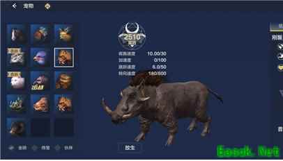 10、狻禄 优点:高大威猛,特别有安全感。 缺点:移动速度较慢,各属性方面很平庸,转向速度甚至不如小猪。
