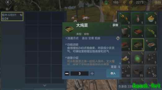 放置好粗木斗柜后点击使用,可以看到界面弹出了粗木斗柜和背包储存物品的面板,目前粗木斗柜的物品放置栏还是空的,之后在背包内的消耗菜单找到并点击想要存放的食物,选择存放的数目后点击存入,就可以看到物品已转移到粗木斗柜中了。 以上就是《妄想山海》家里存放食物方法,更多游戏攻略请持续关注手游网! 本文内容来源于互联网,如有侵权请联系删除。 |