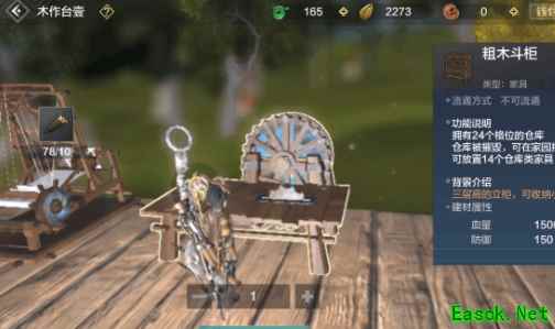 靠近木作台一并点击使用打开制作面板,在家具的制作菜单可以看到粗木斗柜的制作选项,点击进去,可看到粗木斗柜的制作条件和信息说明,之后点击制作,等待制作完成,就可以在地板上放置使用了。 第四,存放食物