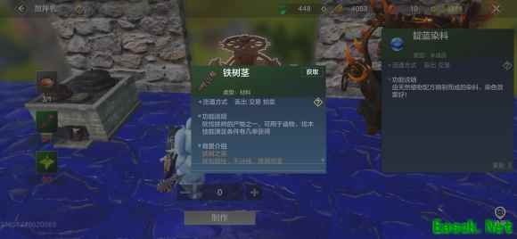 《妄想山海》靛蓝染料获取方法材料获取: 1、购买:拍卖行,用贝币买,拍卖,材料,伐木,如果靠后的区估计很少有人已经26级了 2、要是不是买的材料的话,你得伐木等级26级才能凑够材料,其中铁树茎玩砍树26级 搅拌机制作及所需原料一览